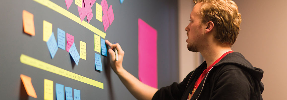 Once you’ve got your idea use the Agile/Scrum Model which divides an idea or a project into various modules to be tested which can be delivered in increments. Assemble a small team whose roles represent the entirety of your project — this team will meet often throughout the duration of the project. Create headers using Post-it® Products for Story (functions/features), To Do, In Process, To Verify and Done. Each team member is responsible for a Story which is colour coded so they can easily visualise which Stories they own. As the project develops and each Story is actioned the team member responsible can move it until it eventually reaches the Done column.